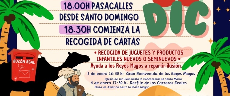 Comenzará a las 18:00 con un desfile desde la plaza de Santo Domingo y llegará a los soportales del Ayuntamiento a las 18:30 donde recogerá las cartas de todos los niños y niñas de Cáceres y localidades cercanas.