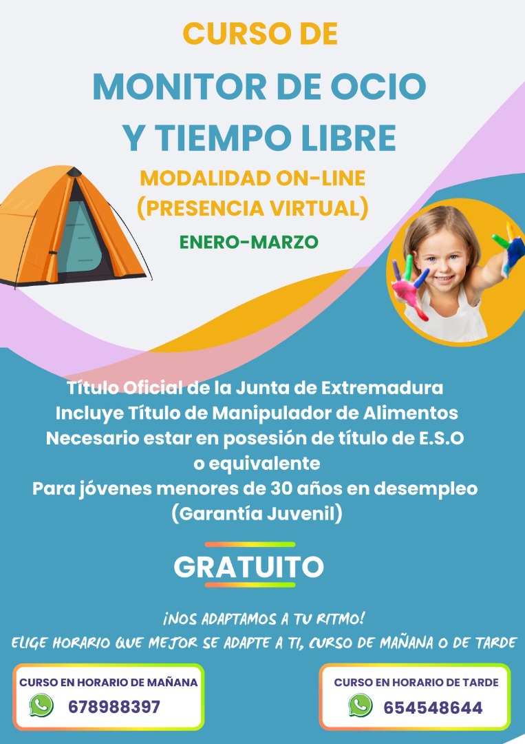 Curso Monitor/a de Ocio y Tiempo Libre. On line. Gratuito. Garantía Juvenil