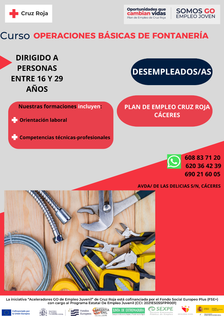 Inscríbete a través de los teléfonos: 690 21 60 05/608 83 71 20/620 36 42 39 o directamente en Cruz Roja Cáceres.